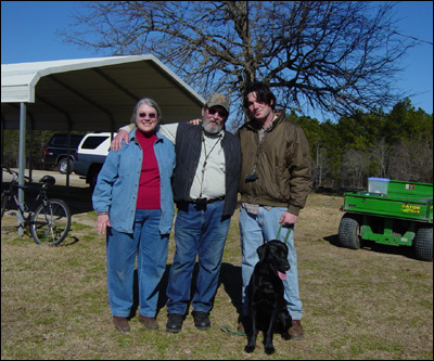Feb. 05 (L to R) Judi, Woody & Perry Thurman of Twin Lakes Kennel with Maximus for his month of sit/stay bootcamp!